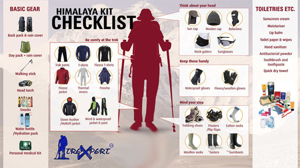 Here’s a quick Picture about all you need to take on a high altitude trek: